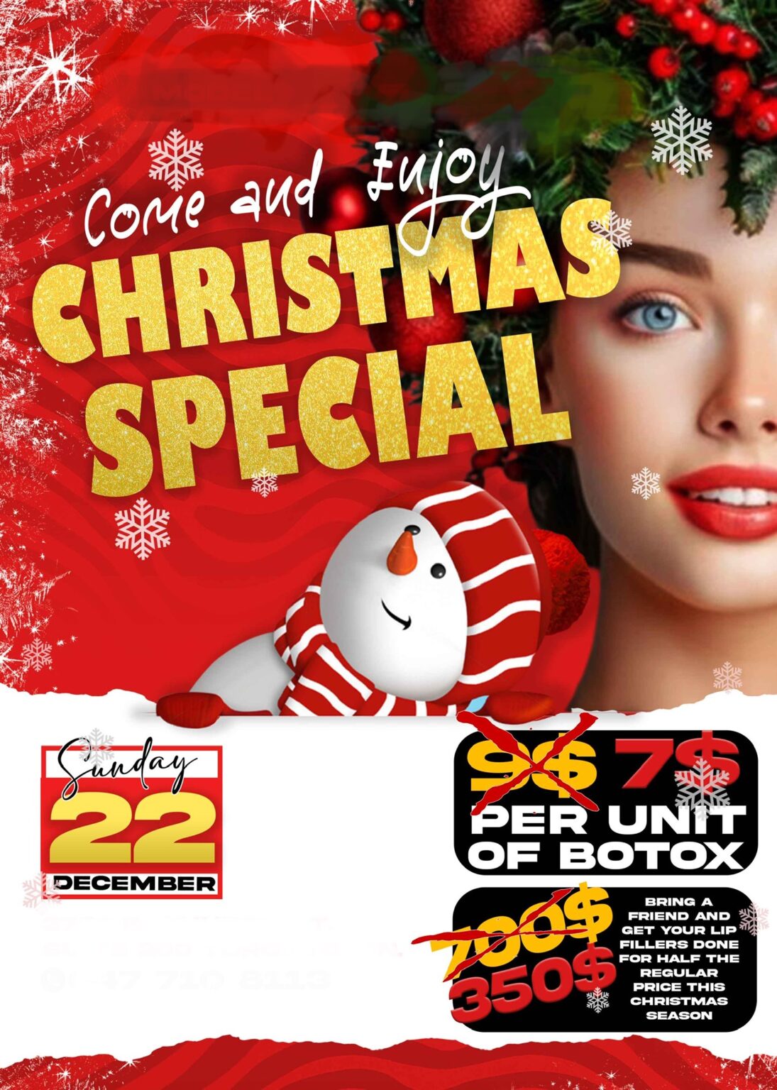 Christmas special 7$ per unit of Botox. regular price was 9$ per unit. come and enjoy our Christmas special 🎄